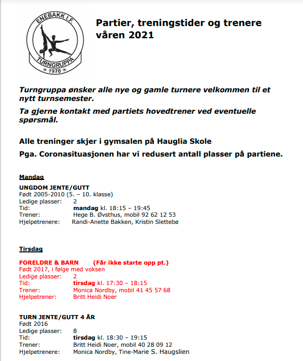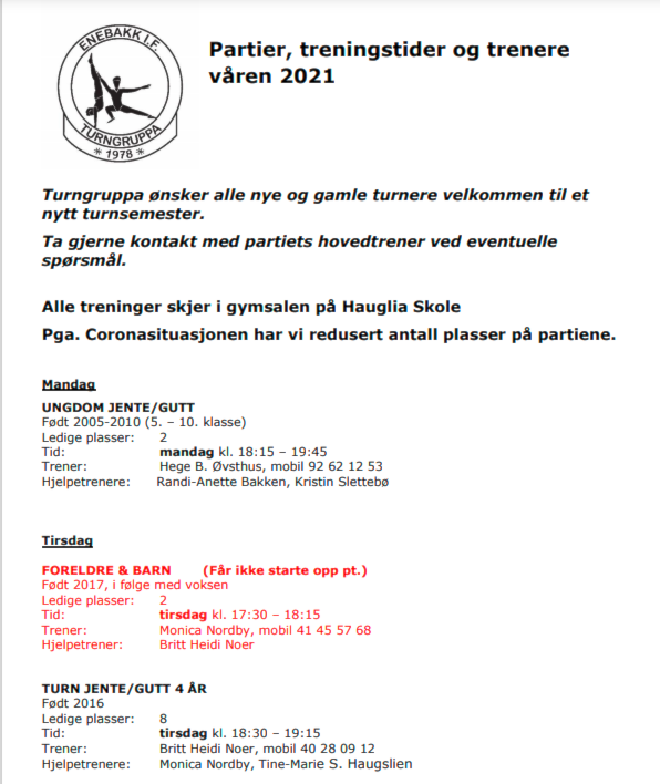 Her legger vi ut litt informasjon om våre treningstider og håper det er til hjelp!